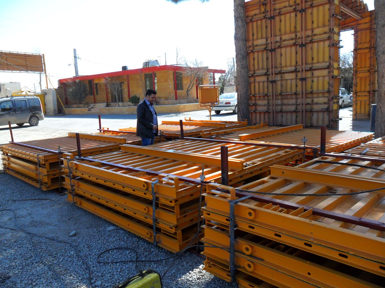 براکت: براکت که با نام هایی همچون پایه نگهدارنده شناخته میشود. برای حفظ و ثابت نگه داشتن سیستم قالب بندی مورد استفاده قرار میگیرد. پایه های براکت با اتصال به زمین یا سازه بتنی در ارتفاع سیستم قالب بندی را آماده برای بتن ریزی میکند.